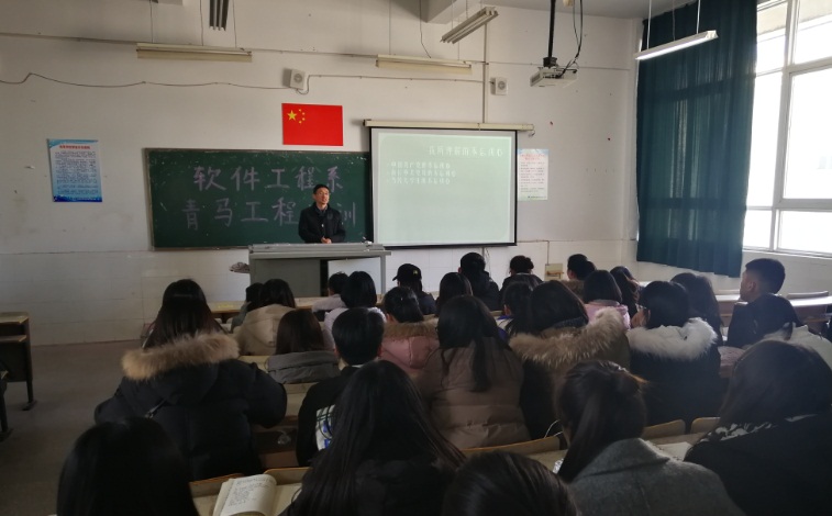 本网讯 为了提高学生干部的政治素养,促进学生干部们了解自身职责,提升综合素质和工作能力,软件工程系青马工程培训于12月18日中午在博学楼606教室开展。本次培训由软件工程系主任陈平担任主讲人,系入党积极分子以及全体学生干部参加了培训,培训由系团总支书记曾甜主持。
