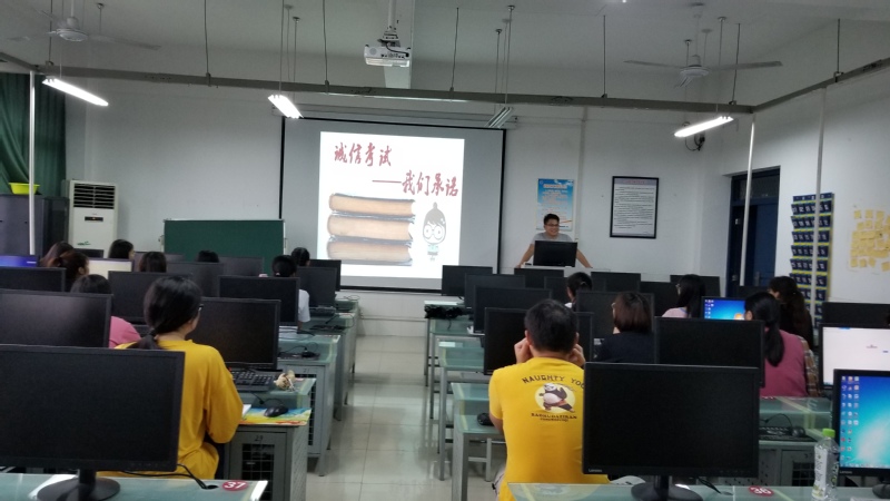 本网讯 为了加强对学生进行诚信教育,提倡学生树立诚信的良好品质,净化考试环境,切实维护考风靠纪,软件工程系于5月28日组织2017级、2018级学生在各班自习教室开展了“诚信考试光荣,违纪舞弊可耻”主题班会。