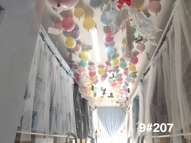 本次活动评审团将根据寝室整洁度、寝室装饰创意、装饰环保性等十项指标进行综合打分。当天中午12:00,评审团走进各个宿舍进行评分,同学们的寝室装扮风格迥异,有活力运动风、清新素雅风,有的寝室贴上了励志标语表达了他们对美好大学生活的希冀;有的寝室设置了照片墙,记录他们大学生活的点点滴滴;有的寝室设置了备忘板,安排他们每天的日程。整洁的地面、温馨的装饰、和谐的氛围、独特的设计在学生宿舍中展现的淋漓尽致,评审团成员无不为之感叹。