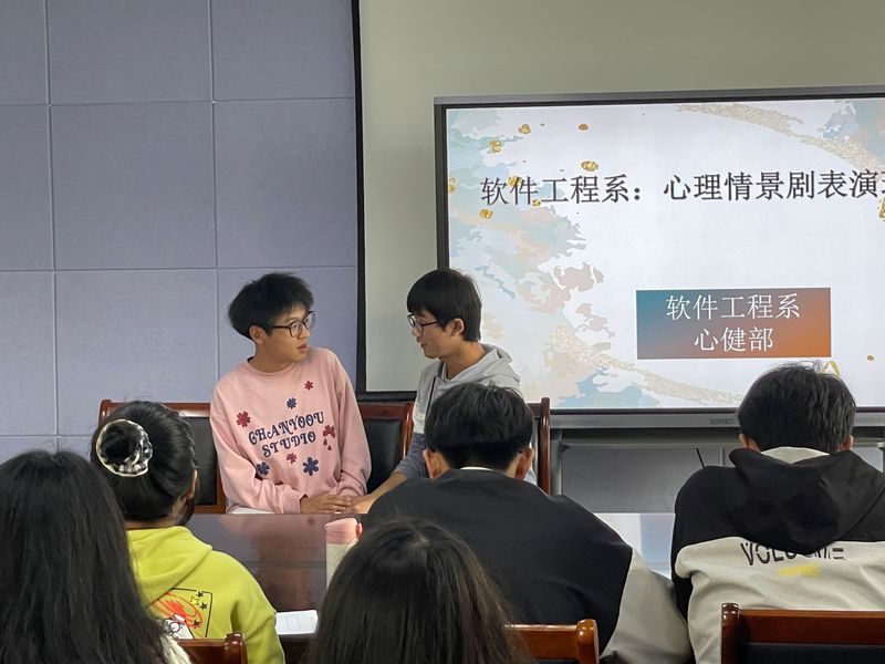 本网讯 为了丰富软件工程系学生的校园文化生活,营造健康和谐的文化氛围,2022年4月30日下午,由学生会心理健康部承办的“心理情景剧”比赛在行知楼601拉开帷幕,各班同学积极参与,为同学们带来了一场别开生面的视觉盛宴。