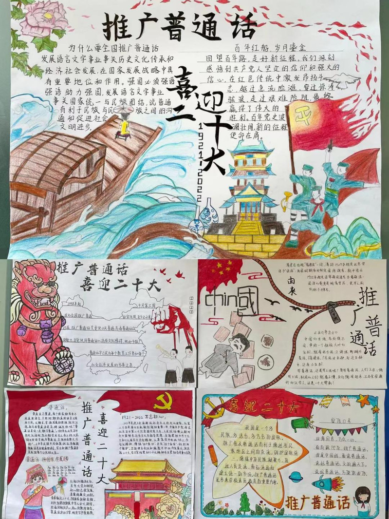 本网讯 为了推广普通话,软件工程系特此举办“推广普通话,喜迎二十大”手抄报比赛。推广普及国家通用语言文字,体现语言文字工作服务铸牢中华民族共同体意识、助力乡村振兴的重要作用,为党的二十大胜利召开营造浓厚氛围。