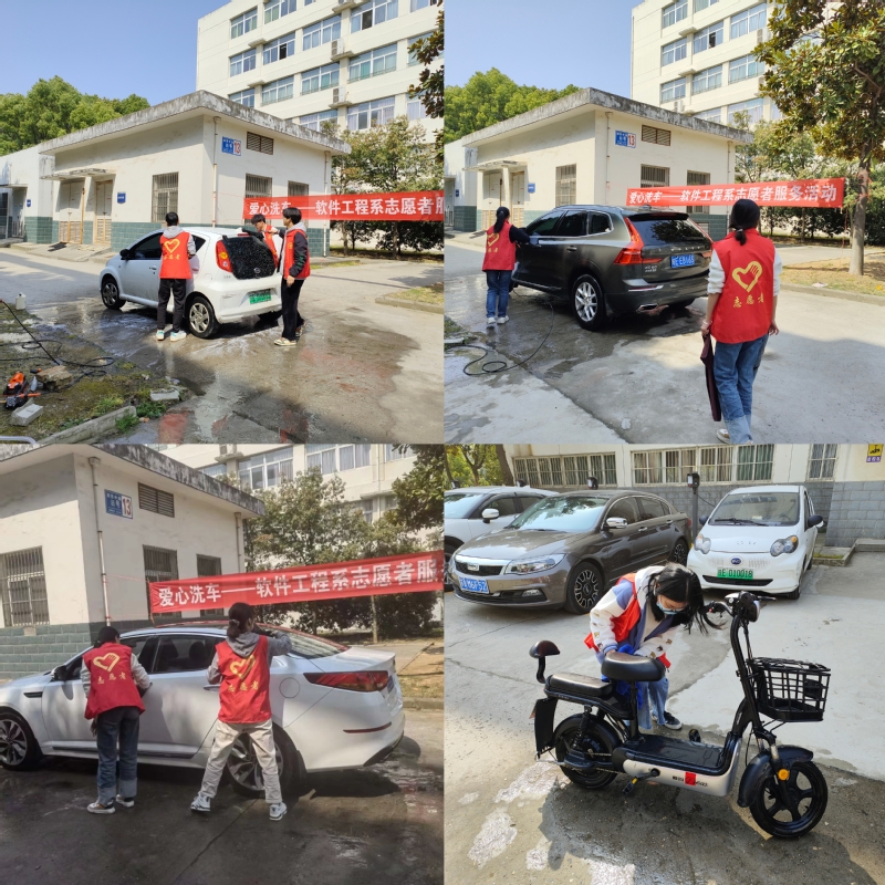 为响应系团总支号召,进一步弘扬雷锋精神,倡导奉献精神,推进学雷锋志愿服务活动的开展,营造文明和谐的校园环境,2023年3月16日,软件工程系组织开展了“爱心洗车”志愿者服务活动,为系部教职工义务洗车护车。