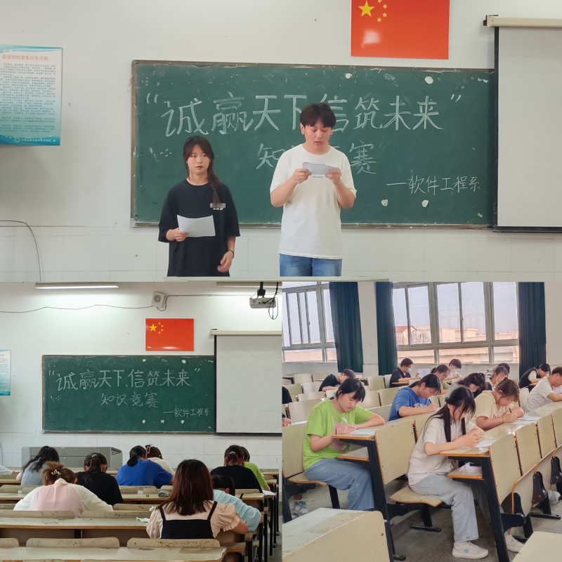 为培养学生诚实守信的优良品质,促进诚信教育的普及,营造良好的诚信校园环境,5月19日,软件工程系在博学楼606教室举办“诚赢天下,信筑未来”知识竞赛。