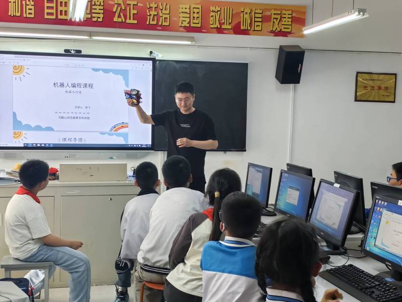 近日,马鞍山师范高等专科学校计算机与信息工程学院的教师走进山南小学,开展机器人编程科普活动。此次活动不仅为小学生们打开了科技世界的大门,也彰显了高校在推动基础教育创新、培养未来科技人才方面的积极作用。